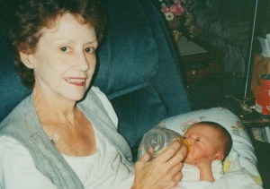 He then proceeded to chemo the heck out of her within an intense short period of time. By July 1995 her treatment was over. Here’s a pic in June with her newborn grand daughter.