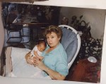while fruitlessly walking downstream from my in-laws’ residence looking for anything left of what was a beautiful home, I realized it was dusk and began to walk back. Then I saw half-way sticking out of the caked dried mud a pic of someone familiar, playfully scowling while holding a baby. I dug it out carefully, put on my reading glasses, and suddenly realized it was me with my firstborn, a 25-year-old pic I had never seen before.